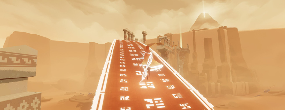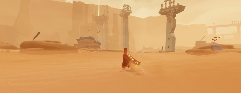 It’s all accompanied by great sound design. Even those basic notes are rich and full of depth, while Austin Wintory’s score is spirited and relentless, inspired by what seems like a myriad of different cultures. It stirs up powerful emotions and crosses cultural boundaries while doing so. Journey is a game anyone can play, no matter where they’re from. There’s only one language in it: music. Gliding gracefully through ancient ruins accompanied by a flock of flying cloth creatures, listening to the steady roar of the sand underfoot, accompanied by swelling orchestral music, was revelatory.