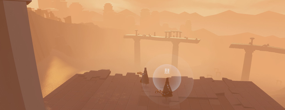 Journey alternates between gentle and intense, and its gameplay is the former. The game’s puzzles are captivating in their own way, relying on simple button presses that make your cloth person emit a single drawn-out musical note accompanied by a burst of white light. The solutions are never handed to you, but at the same time Journey offers the perfect amount of guidance. At the beginning, it shows the player this simple aura-emitting mechanic, which helps you figure out how to solve all of the game’s upcoming puzzles. Some puzzles also require you to jump and reach new areas. You can also float in the air for a limited time, determined by the length of the flowing scarf adorned with symbols wrapped around your character’s neck. You can lengthen your scarf by locating glowing symbols while exploring, a soft version of traditional video-game levelling.